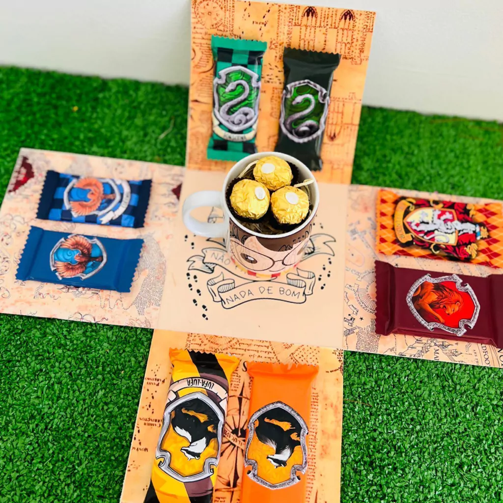 Tudo personalizado com o nome da pessoa, com frases e do tema que desejar.