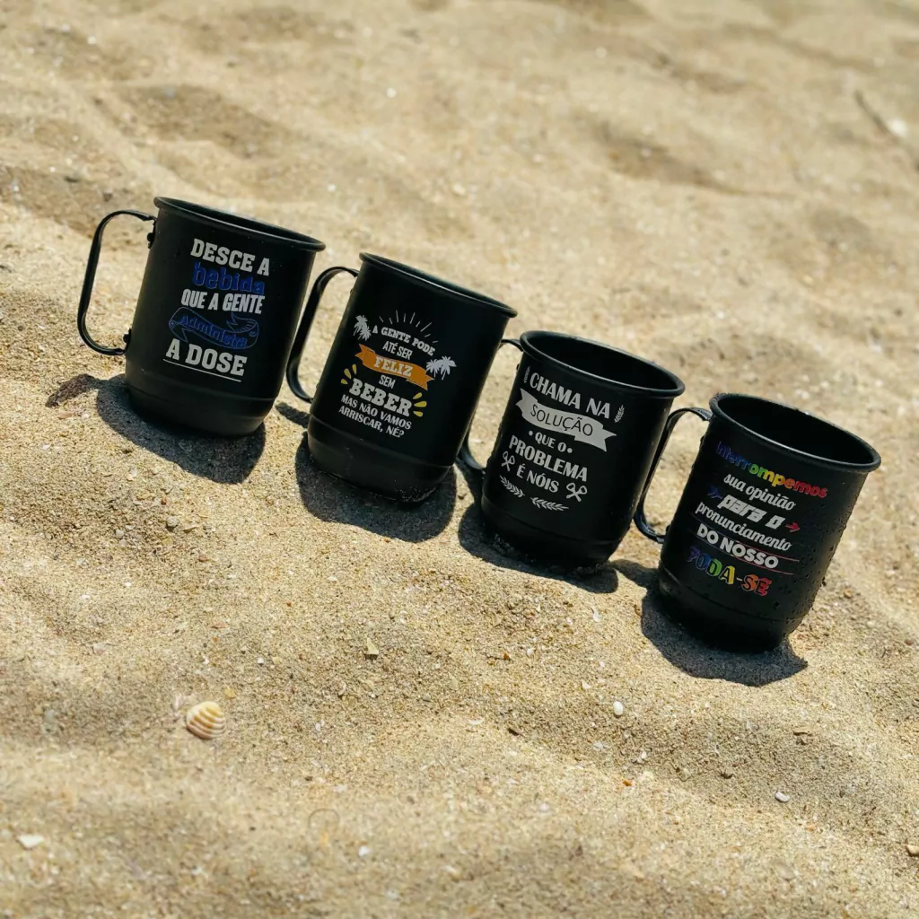 Feita em Alumínio com uma pintura envernizada atóxica, podendo ter contato com bebidas e alimentos.