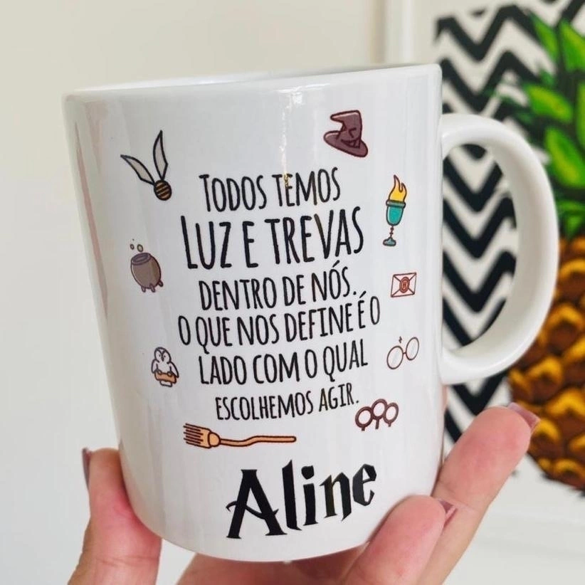 Tudo personalizado com o nome da pessoa, com frases e do tema que desejar.
