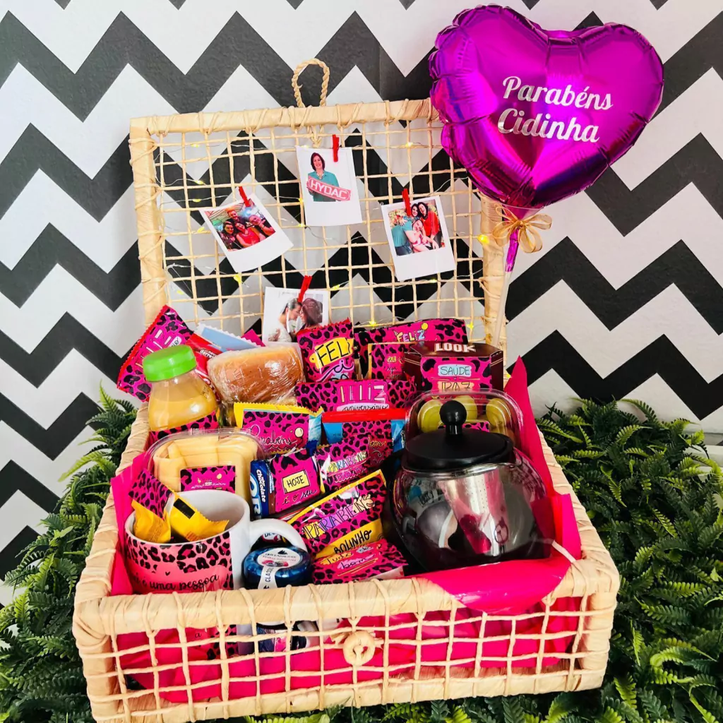 *Os itens podem ser alterados, de acordo com a disponibilidade. Todos os itens são personalizados, Após finalizar a compra, envie o nome, o tema ou a frase que irá na cesta para o e-mail: [email protected] .