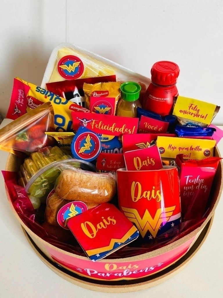 *Os itens podem ser alterados, de acordo com a disponibilidade. Todos os itens são personalizados, Após finalizar a compra, envie o nome, o tema ou a frase que irá na cesta para o e-mail: [email protected] .