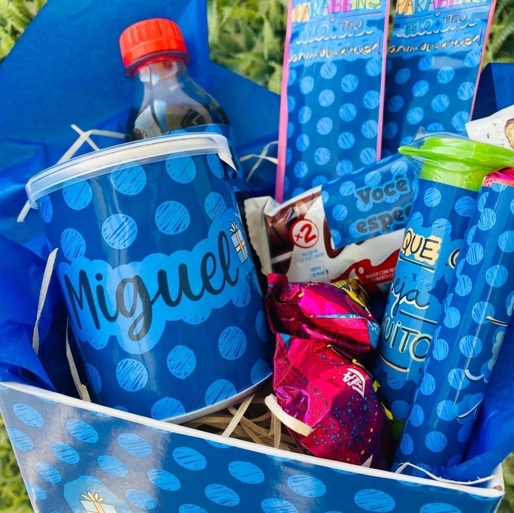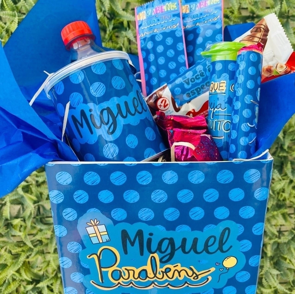 *Os itens podem ser alterados, de acordo com a disponibilidade. Todos os itens são personalizados, Após finalizar a compra, envie o nome, o tema ou a frase que irá na cesta para o e-mail: [email protected] .