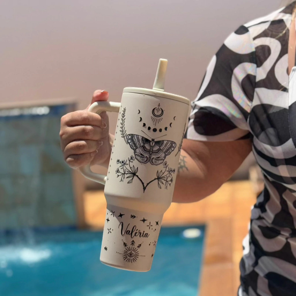 Copo Térmico PERSONALIZADO com Tampa e Canudo.